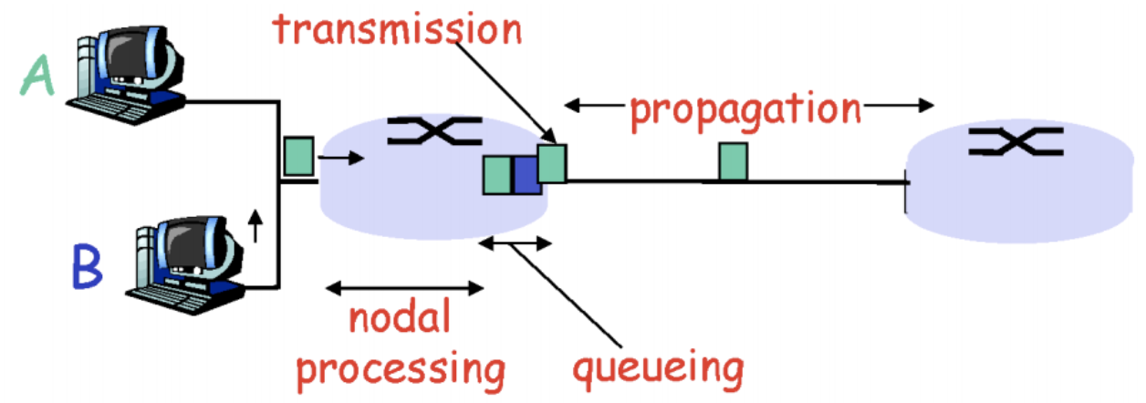 - processing delay: 먼저 라우터에서 패킷을 받으면, 맨 먼저 패킷 검사를 한다.(어디로 가야하는지, 제대로 된 패킷인지 확인) ⇒ 라우터 성능에 따라 줄일 수 있다.