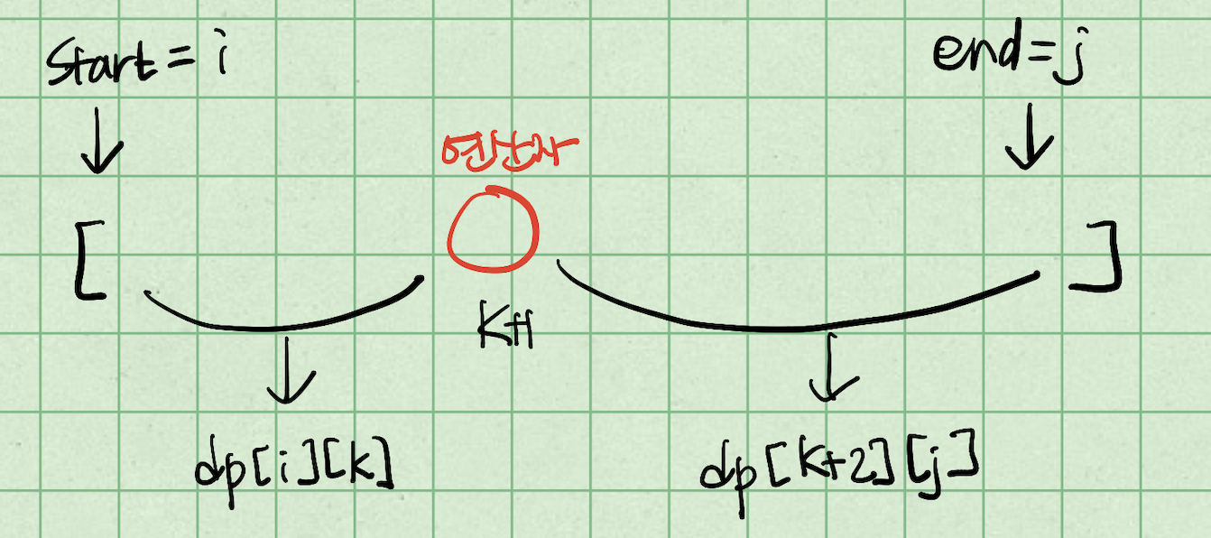 dp[i][j]: 인덱스 i ~ j 까지 괄호 계산을 한 값이라고 정의하자.