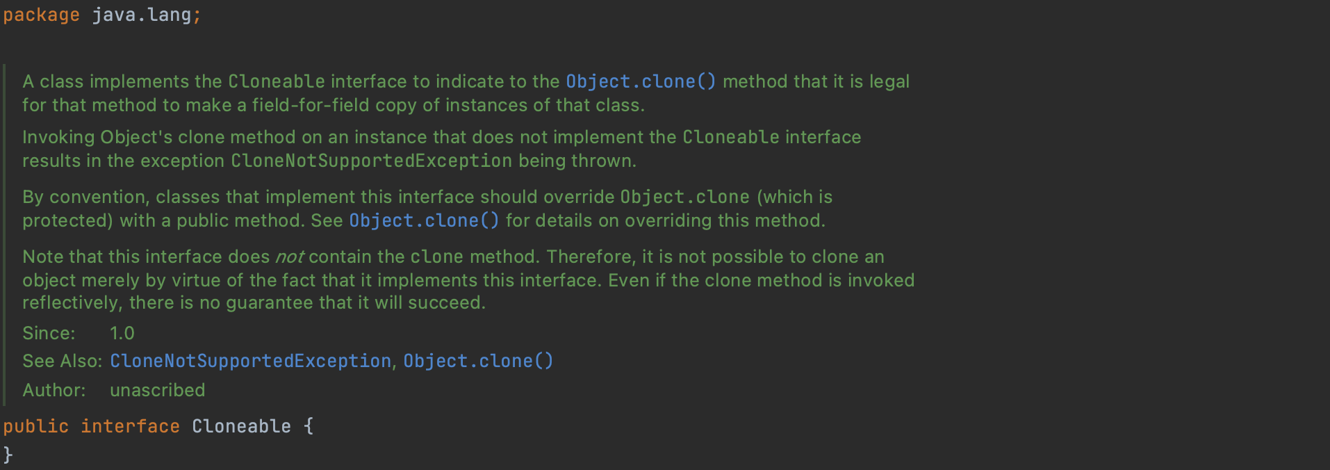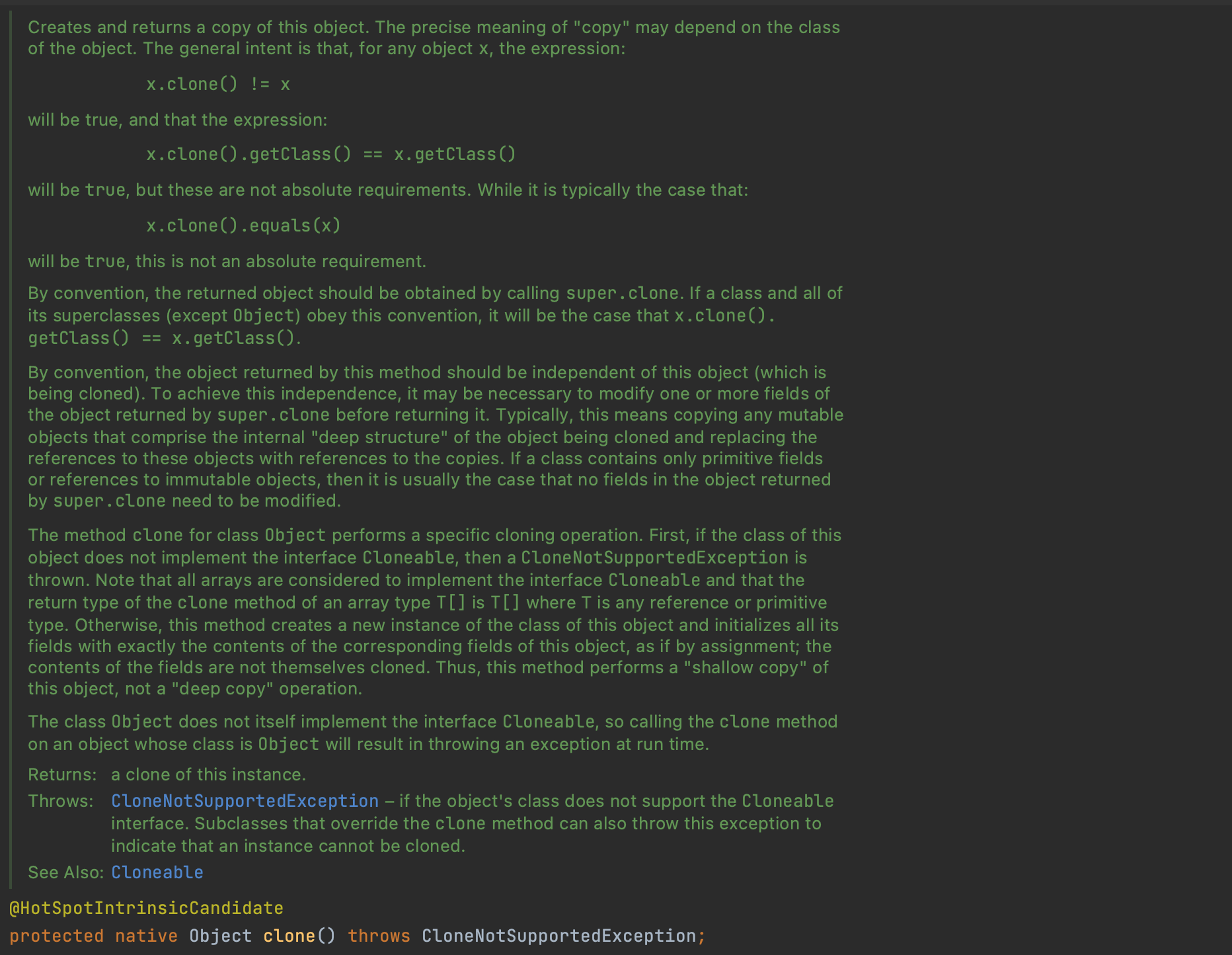 protected final Object clone() throws CloneNotSupportedException {