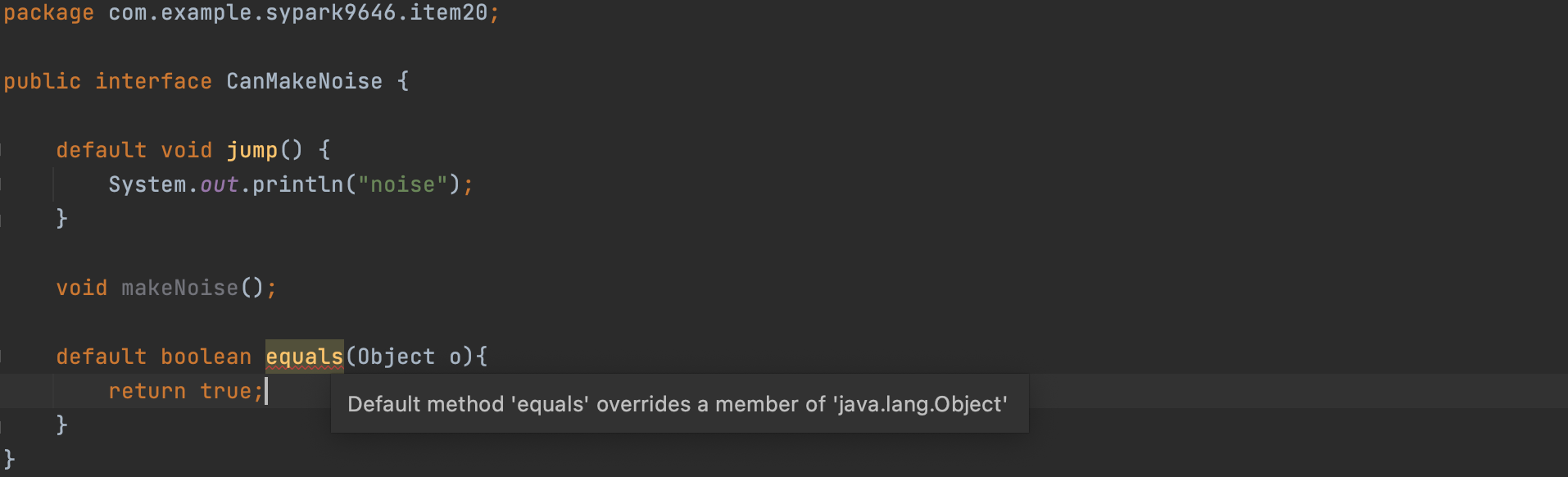 디폴트 메서드에도 제약은 있다. 인터페이스는 Object 클래스의 equals나 hashCode 등을 디폴트 메서드로 제공하면 안된다.