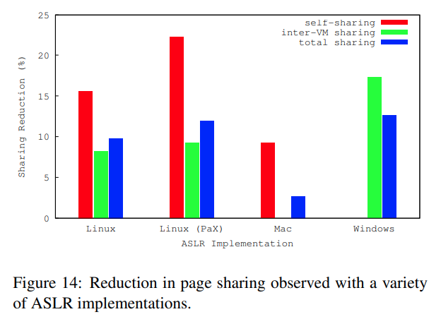 좀더 자세히 보면, Linux의 경우 ASLR은 self-sharing 및 inter-vm sharing 모두 줄였다.