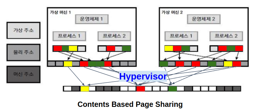 다시 페이지 중복 예시로 돌아와서, Inter-VM sharing 의 하나의 예시 Contents Based Page Sharing 를 알아보자.