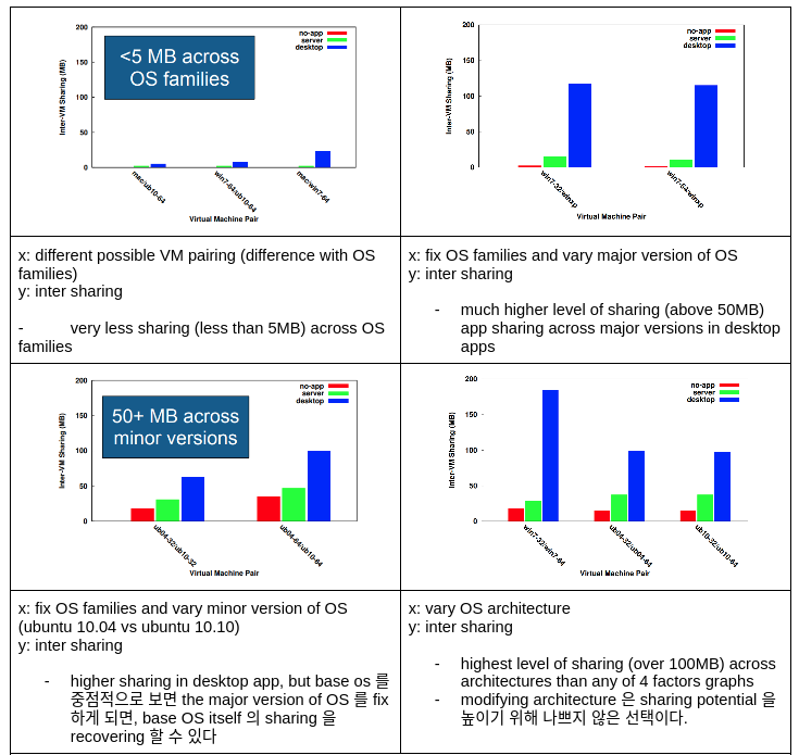 애플리케이션 셋업 시 작은 inter-vm sharing 이 관찰 된 이유는 공유 리소스 파일 때문일 가능성이 높고, 그래서 서버 케이스보다 데스크탑 케이스에서 훨씬 더 크다고 생각할 수 있다.