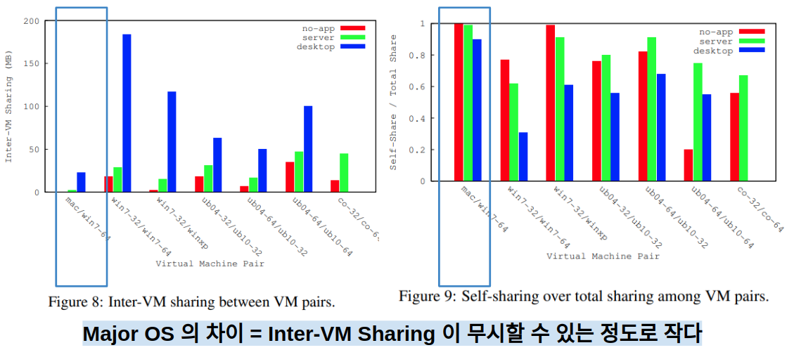 MAC, Windows XP VM의 경우 Windows 7, Linux VM 들에 비해 훨씬 더 높은 self-sharing 을 나타낸다.