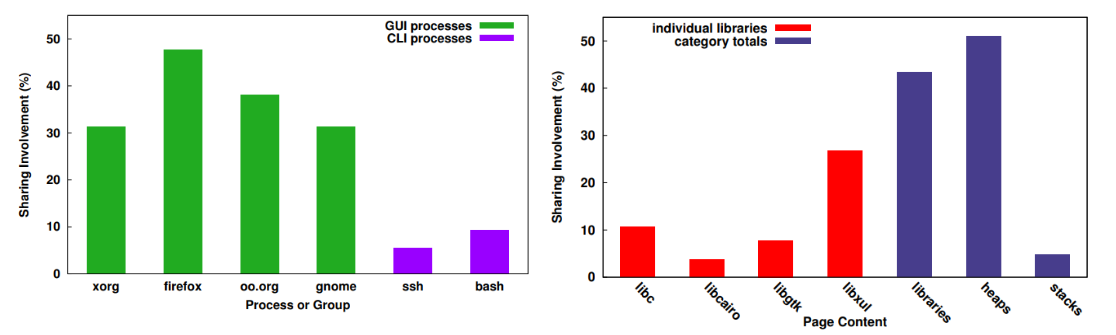 그리고, Linux 커널 내에서 자체 공유에 대한 Case Study 를 수행하고, GUI 응용 프로그램 및 관련 시스템 라이브러리가 자체 공유 가능성의 가장 명확한 소스임을 발견했다. (Linux 외 다른 OS 에서도 동일한지 향후 연구로 남겨 둠)