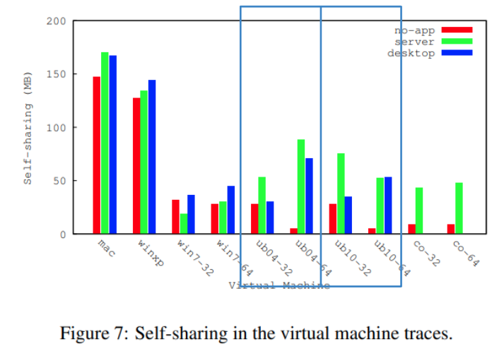 이 경우, no-app 시스템의 80%에 달하는 공유는 self-sharing 이 아닌 inter-vm sharing 으로 인한 것이다.