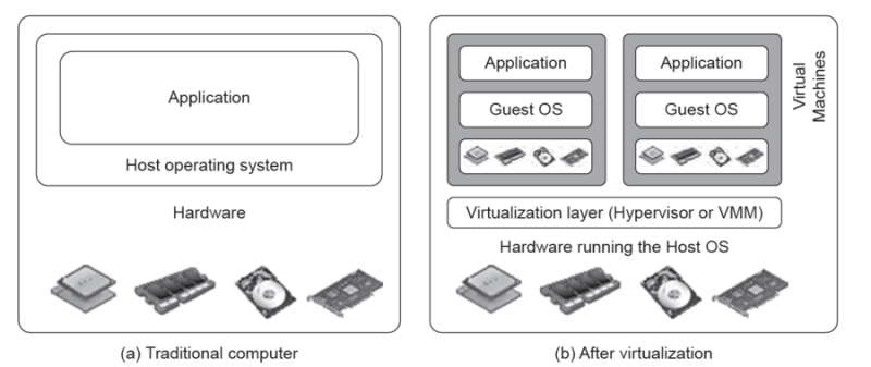 가상 머신은 가상화를 사용한 가상 환경인데, 가상화 기술을 사용하기 이전에, 전통적인 컴퓨터에서는 물리적인 컴퓨터 하나에 하나의 OS 만 설치가 가능했다.