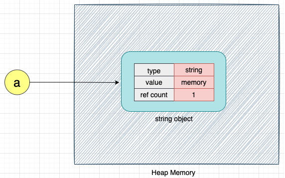 위 코드가 실행되면, CPython 은 문자열 유형의 객체 메모리를 생성한다.