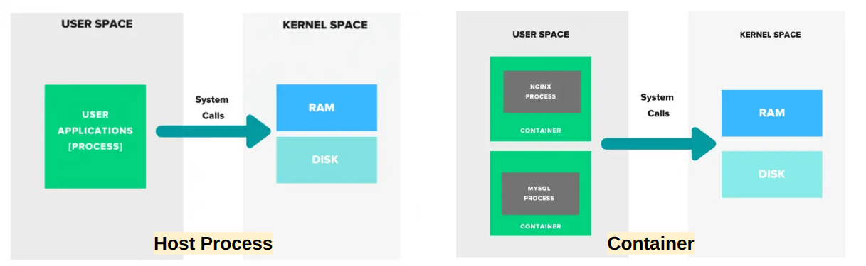 커널관점에서는 컨테이너 내에서 실행되는 프로세스 vs 호스트에서 실행되는 프로세스가 크게 다르지 않다.