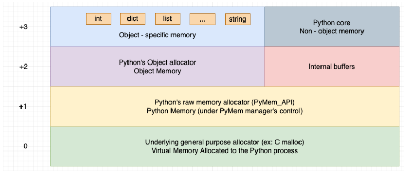object allocator 는 pymalloc이라고도 하며, 크기가 512 byte 미만인 작은 개체에 메모리를 할당하는 데 사용된다.