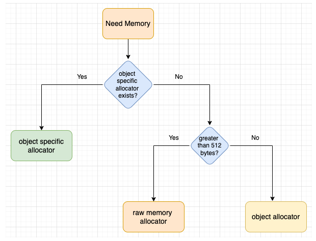 객체가 메모리를 요청하고 객체에 object-specific allocator 가 정의되어 있으면, object-specific allocator 가 메모리를 할당하는데 사용된다.